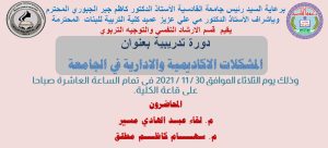 وذلك يوم الثلاثاء الموافق 30 / 11 / 2021 في تمام الساعة العاشرة صباحا على قاعة الكلية.