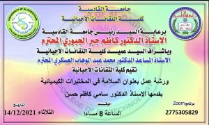وذلك بتاريخ ٢٠٢١/١٢/١٤ يلقيها الاستاذ الدكتور فاضل سامي كاظم حسن