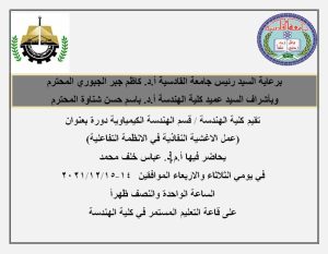 وبإشراف السيد عميد كلية الهندسة الأستاذ الدكتور باسم حسن شناوة المحترم .