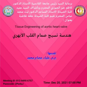 برعاية السيد رئيس جامعة القادسية الاستاذ الدكتور كاظم جبر الجبوري المحترم وبأشراف السيد عميد كلية الصيدلة الاستاذ المساعد الدكتور ليث محمد عباس المحترم تقيم كلية الصيدلة حلقة نقاشية بعنوان: