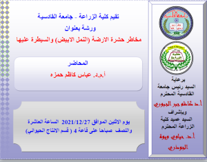 برعاية رئيس جامعة القادسية الاستاذ الدكتور كاظم جبر الجبوري المحترم واشراف عميد كلية الزراعة الاستاذ الدكتور حياوي ويوة الجوذري