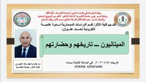 يحاضر فيها م.د جاسم شهد وهد الجبوري تدريسي في كلية الآثار … وذلك عبر منصة ( zoom ) في تمام الساعة الثامنة من مساء يوم الأربعاء الموافق٥/ ١ /٢٠٢٢