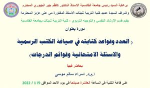 على قاعة الكلية في الساعة العاشرة صباحاً في يوم الاحد الموافق 9/ 1 / 2022