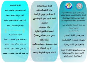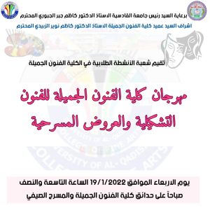 مهرجان كلية الفنون الجميلة للفنون التشكيلية والعروض المسرحية 2022-01-182022-01-18 admin لا توجد تعليقات Uncategorized