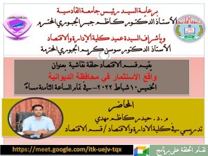 يقيم قسم الاقتصاد / كلية الادارة والاقتصاد / جامعة القادسية حلقة نقاشية بعنوان واقع الاستثمار في محافظة الديوانية