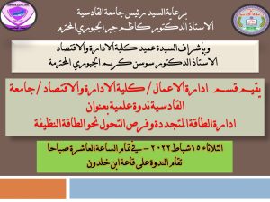 يقيم قسم ادارة الاعمال / كلية الادارة والاقتصاد / جامعة القادسية ندوة علمية بعنوان