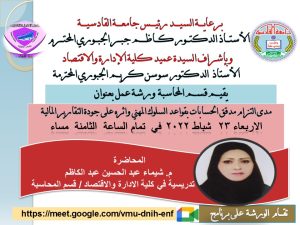 يقيم قسم المحاسبة/ كلية الادارة والاقتصاد / جامعة القادسية ورشة عمل بعنوان