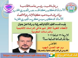 يقيم قسم العلوم المالية والمصرفية / كلية الادارة والاقتصاد / جامعة القادسية ورشة عمل بعنوان