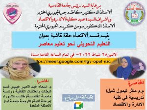 وذلك عبر تطبيق ( meet ) في الساعة الثامنة من مساء يوم الاثنين 28 شباط 2022