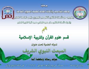 يقيم قسم علوم القرآن والتربية الإسلامية ندوة علمية بمناسبة المبعث النبوي الشريف