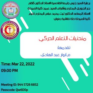 برعاية السيد رئيس جامعة القادسية الاستاذ الدكتور كاظم جبر الجبوري المحترم وبأشراف السيد عميد كلية الصيدلة الاستاذ المساعد الدكتور ليث محمد عباس المحترم تقيم كلية الصيدلة حلقة نقاشية بعنوان: