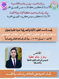 يحاضر فيها :- م.كرار حاتم عطية / تدريسي في قسم العلوم المالية والمصرفية