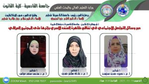 برعاية السيد رئيس جامعة القادسية الاستاذ الدكتور كاظم جبر الجبوري المحترم وبإشراف السيد عميد كلية القانون الاستاذ الدكتور نظام جبار طالب المحترم . يقيم قسم القانون الخاص ندوته العلمية والموسومة بعنوان ( دور وسائل التواصل الاجتماعي في تفاقم ظاهرة العنف الاسري واثرها على المجتمع العراقي)