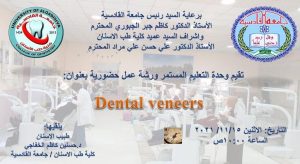 تتضمن الورشه مفاهيم عن ما هية القشور الخزفية او ما يعرف ب (ابتسامة هوليود) و اهميتها في مجالات ترميم وتجميل الاسنان وعرض بعض الحالات السريرية لمناقشة كيفية استعمالها