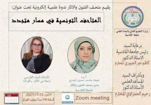 برعاية السيد رئيس جامعة القادسية الاستاذ الدكتور كاظم جبر الجبوري المحترم وبإشراف السيد مساعد رئيس الجامعة للشؤون العلمية الاستاذ الدكتور رحيم الحمزاوي المحترم .. يقيم متحف الفنون والآثار في رئاسة الجامعة ندوة علمية بعنوان ( المتاحف التونسية في مسار متجدد ) تقدمها الباحثة في الآثار والتراث لمياء الفارسي من تونس