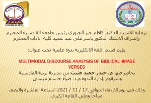 يقيم قسم اللغة الإنكليزية في كلية الآداب – جامعة القادسية ندوة علمية حول تحليل شكلاني متعدد لشعر الصورة التوراتية